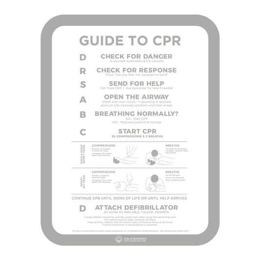 Regular price $114.95Regular price$114.95Sale price $114.95Unit price perPremium ‘Classic’ CPR Pool Sign The Slim - Grey & White