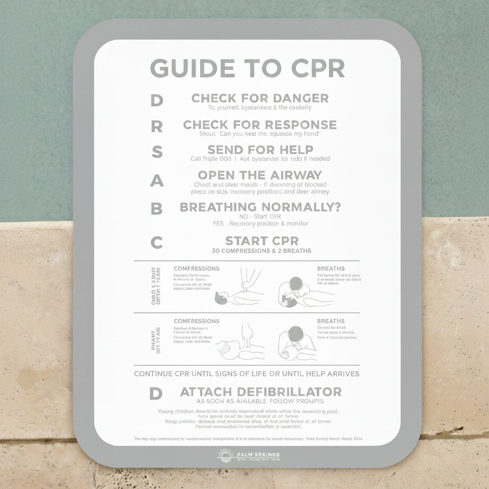 Elevate both safety and style in your pool area with our value Premium ‘Classic’ Designer CPR Pool Safety Signs. Thoughtfully crafted to comply with Australian safety regulations, these signs provide clear, easy-to-read instructions for family and guests, while enhancing the overall aesthetic of your space.